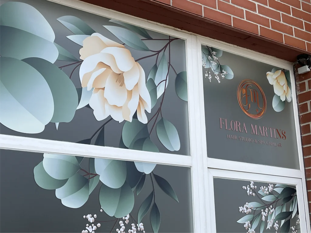 Rebranding para a Flora Martins, com decoração do novo espaço.